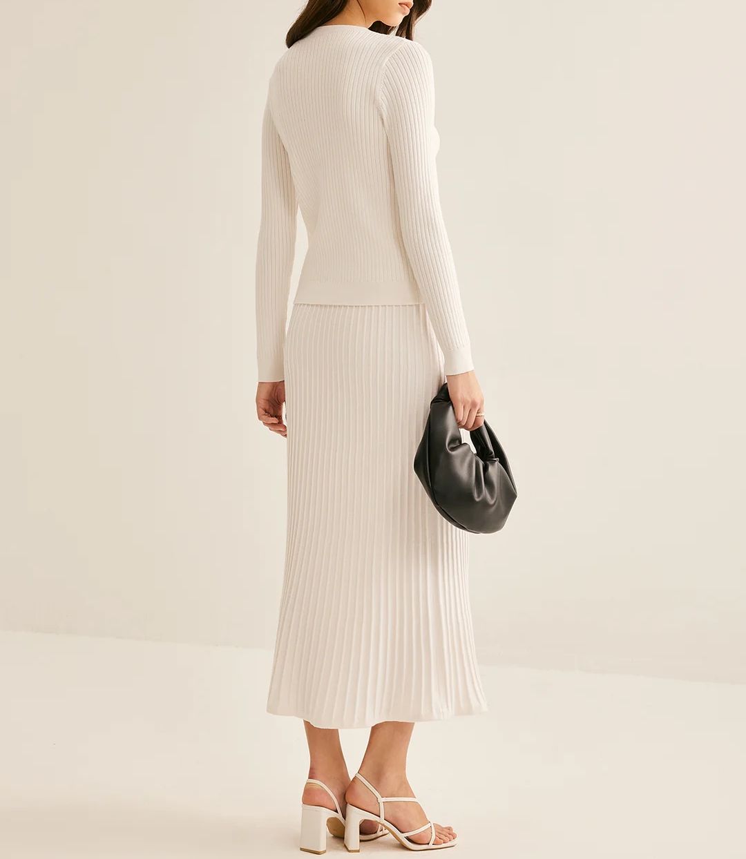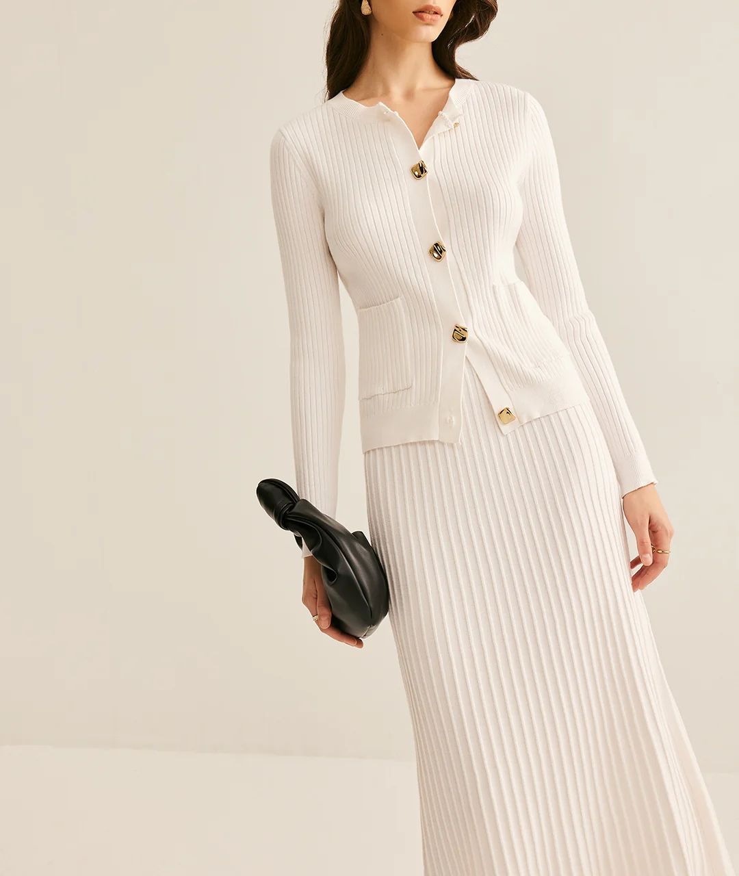 • Women's Spring Casual Outfit Set Breathable Knit Cardigan Set with Skirt Mini Skirt Knee Sweet Style Button Decoration Solid