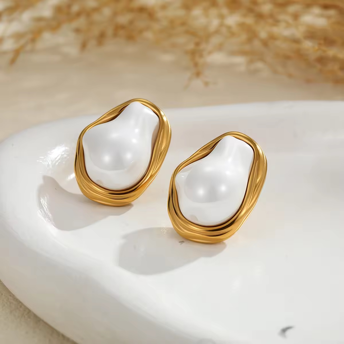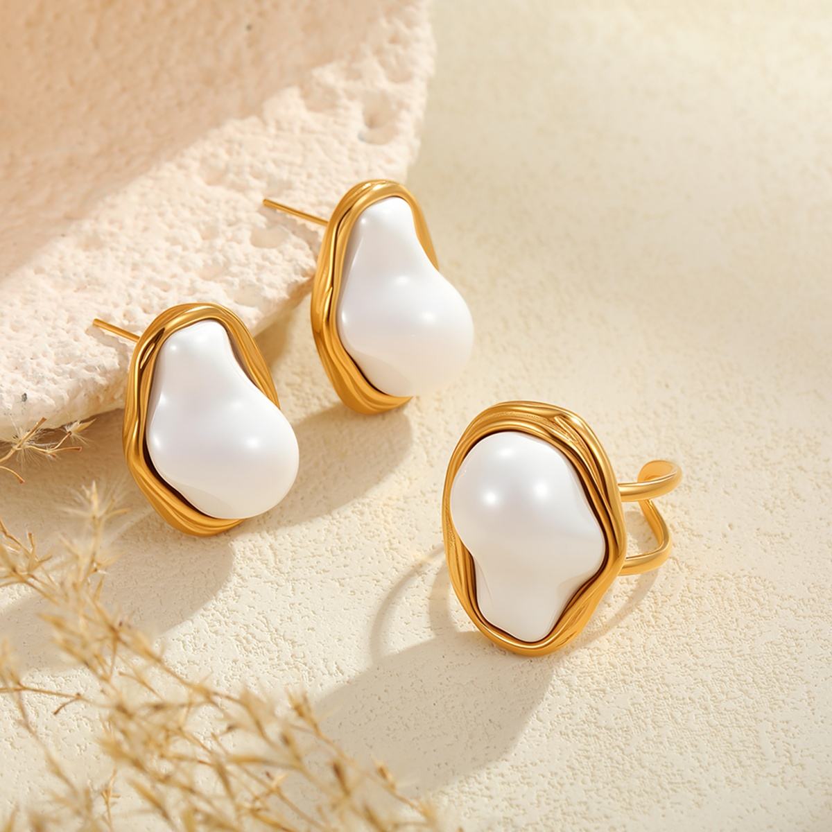 • Baroque Pearl Earrings Ring Set for Parties Gifts Stylish Stainless Steel Accessories for Women